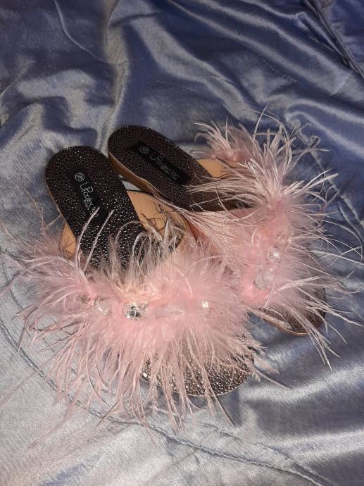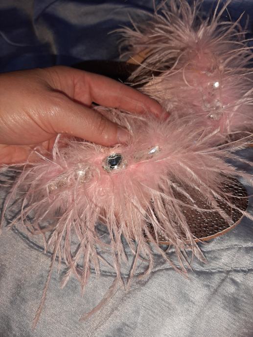 Prekrasne potpuno nove ženske natikače s perjem. Vel. 38, ali može i 37