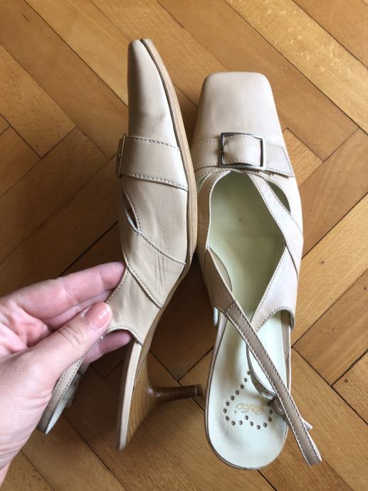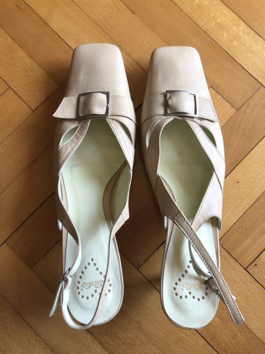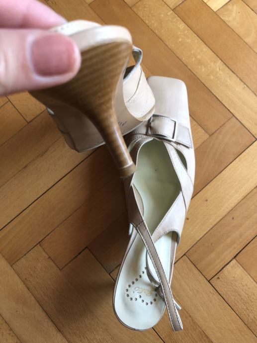 Nenošene, bež boje. Remenčić oko gležnja koji se može podesiti, visina pete 3,5 cm. Imaju protuklizni potplat.