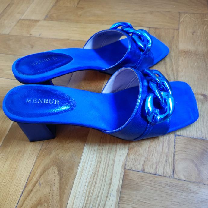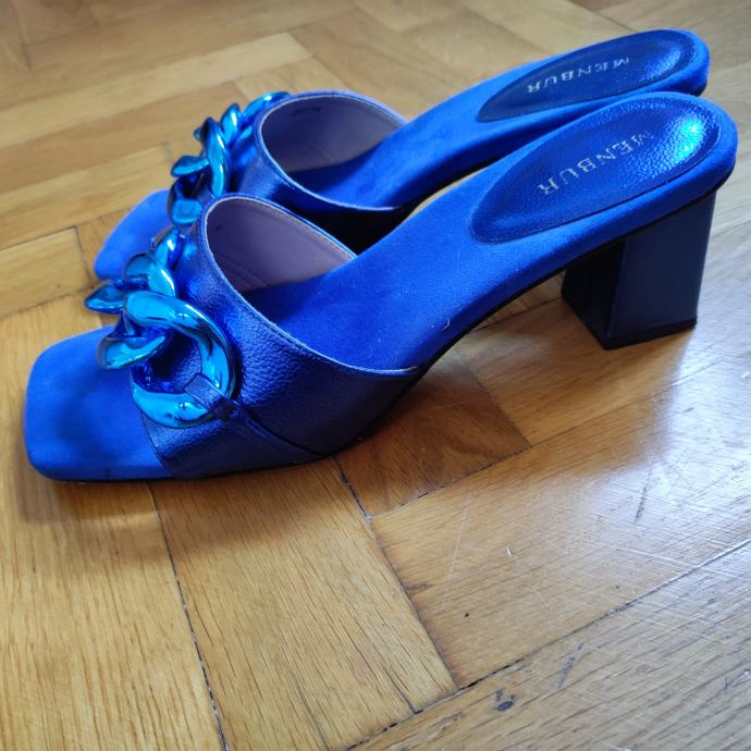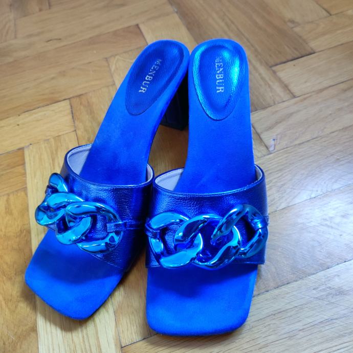 Ženske natikače, nošene 2 puta, bez oštećenja, kožne, blok peta