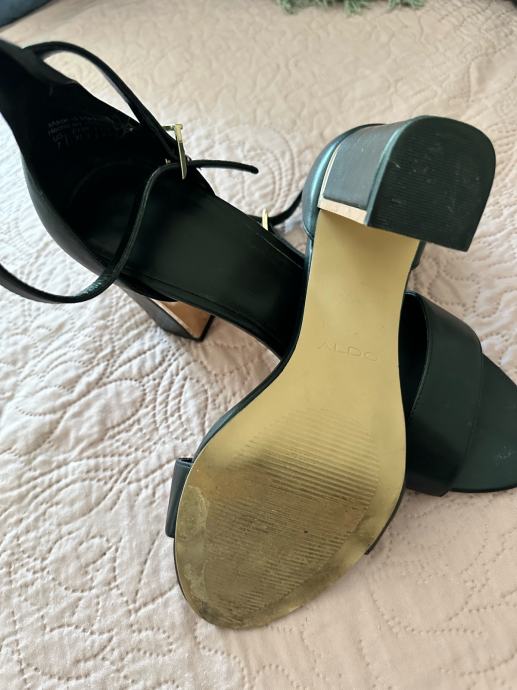 Jednom nošene kožne sandale brenda ALDO, br: 37, 5 crne prodajem. Visina petice 8,5 cm.