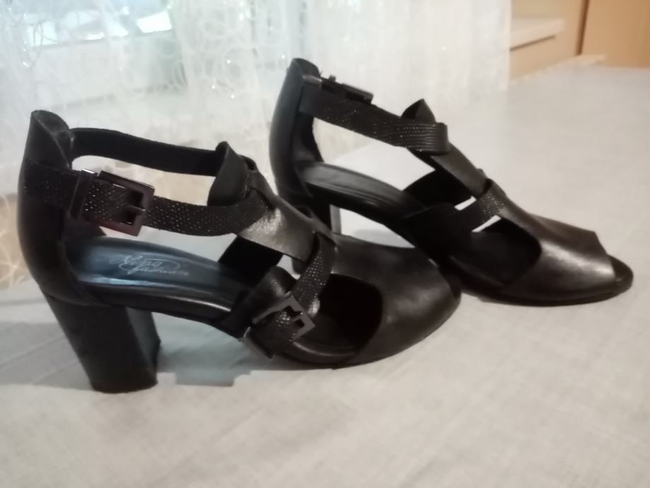 Prodajem ženske sandale, broj 39. Sandale su kožne i crne boje. Nošene su dva puta u svečanim prigodama i jako dobro su očuvane.