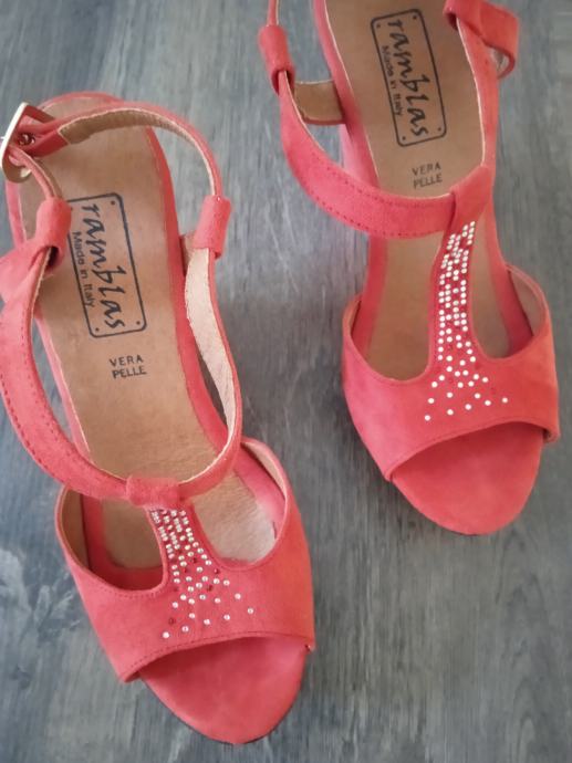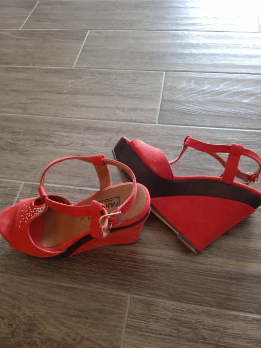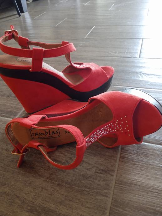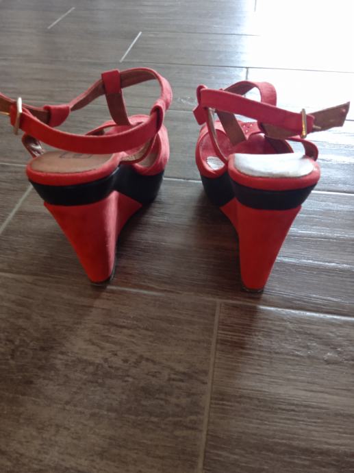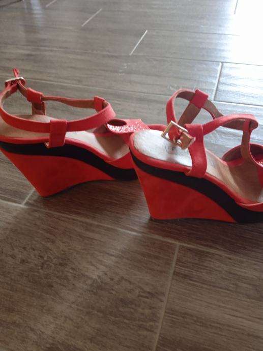 Ženske svečane sandale, crveno-narančaste, visina pete 10cm (sa platformom 13cm). Nove, br.38 prodajem za 16 E. mob 091 892 0525