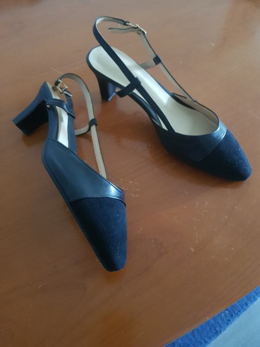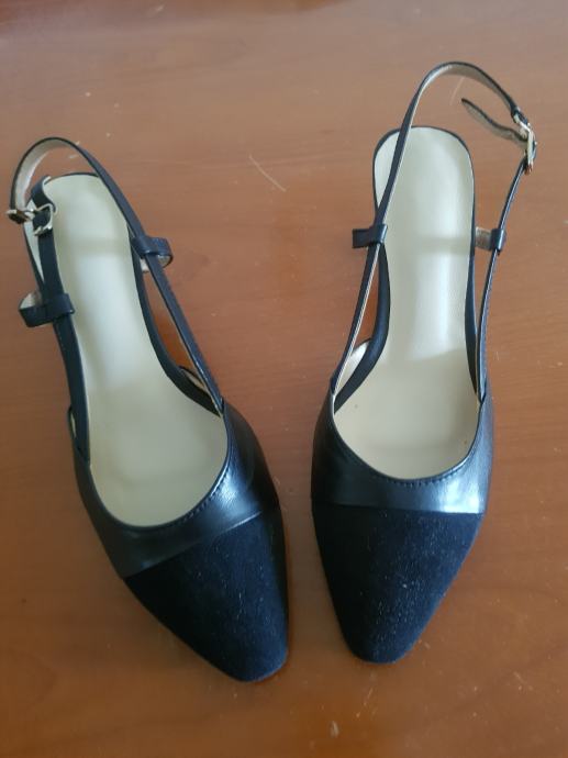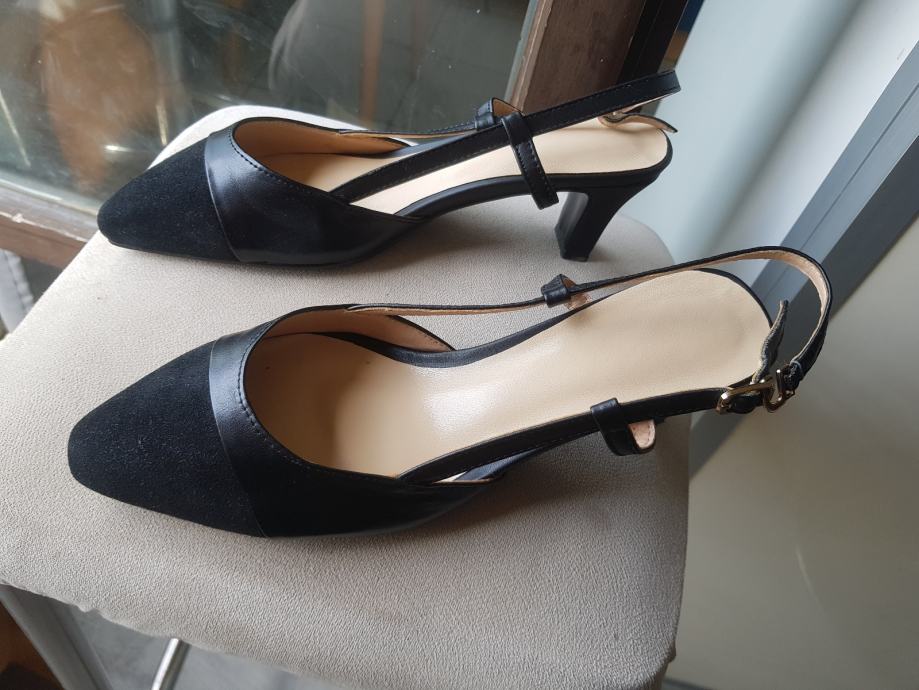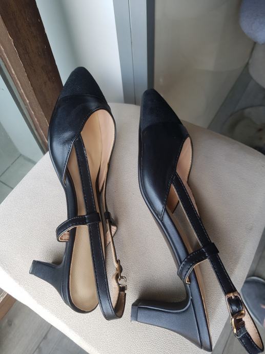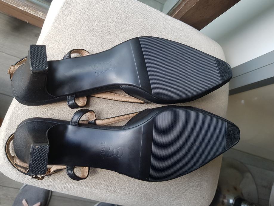 Ženske crne nove špičaste sandale, kombinacija kože i velura, broj 39, duljina uloška 25, visina potpetice 5 cm, kožni đon