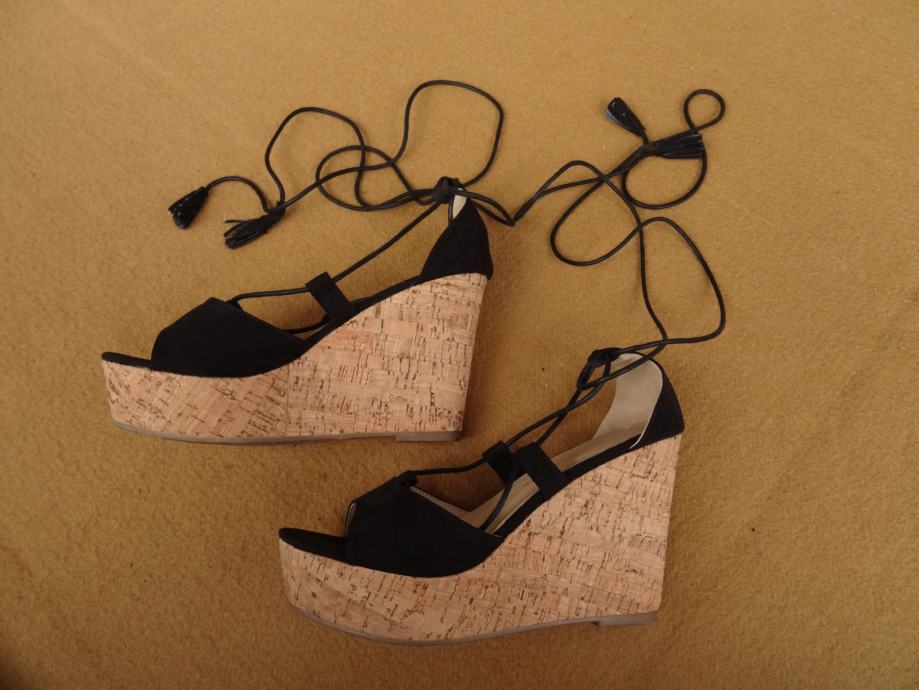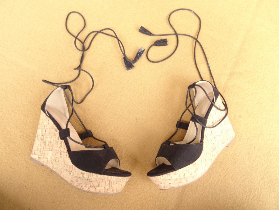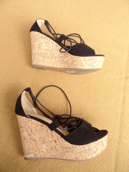 Ženske sandale na povišenu petu na vezanje Roque Bijoux br. 38. Potpuno očuvane, u super stanju, malo nošene.