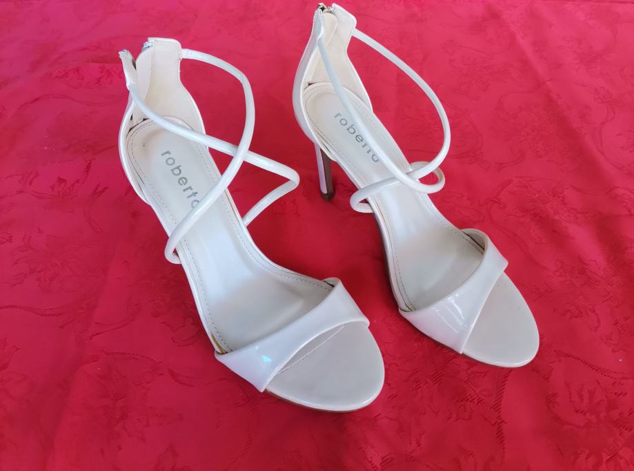 Malo nošene svijetlobež sandale, visina potpetice 10 cm