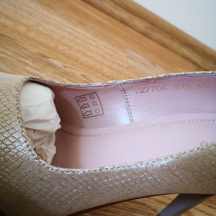Potpuno nove ženske štikle nikad nošene ručni rad plaćene 110maraka poštarina putem tiska je od mene ostale dostavne službe vi plaćate štikle su više boje šampanjca nego zlatne za dodatne slike i videa slobodno se javite