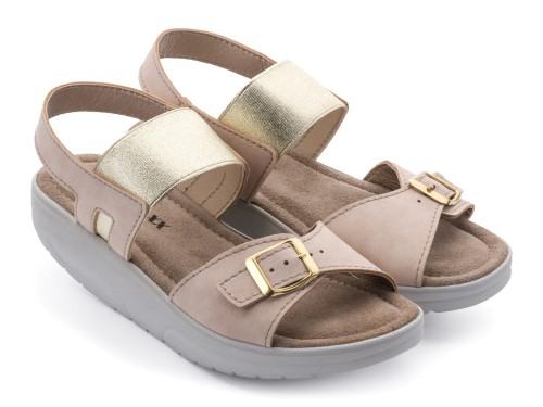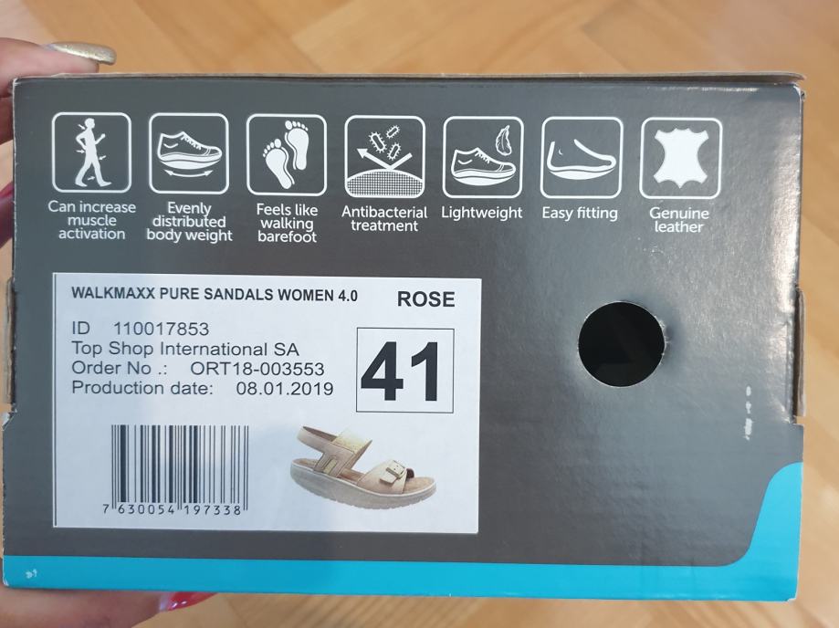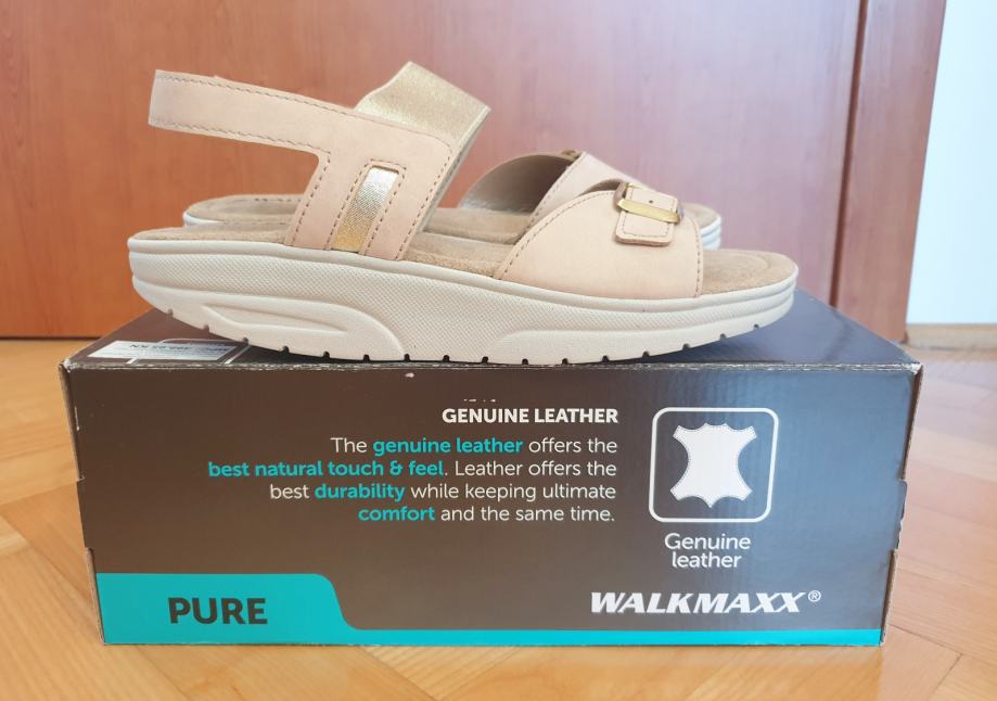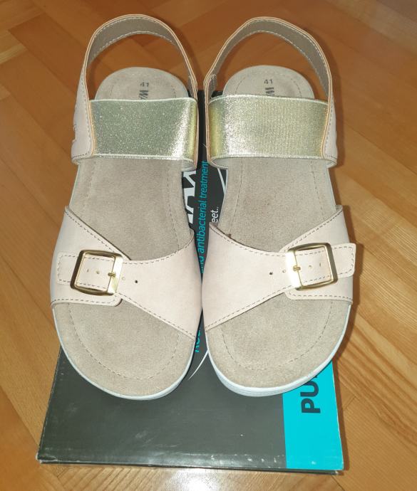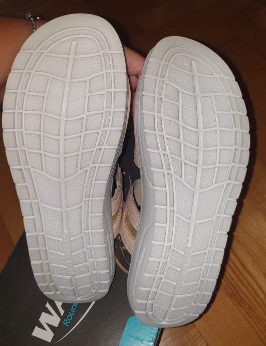 Ženske nove Walkmaxx sandale puderasto roze sa zlatnim. Veličina 41, gazište je prikazno na slici.