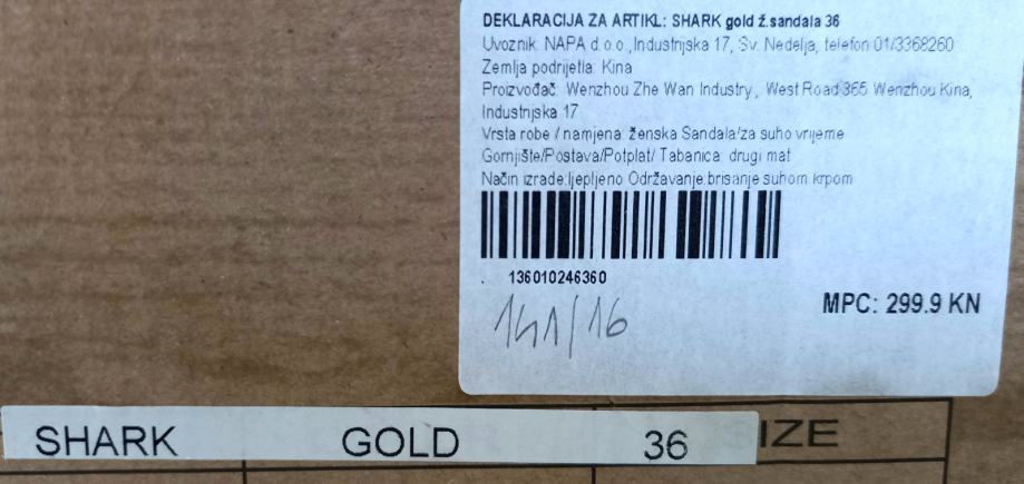 Zlatne sandale SHARK gold sa vezicama za gležnjeve veličina 36.