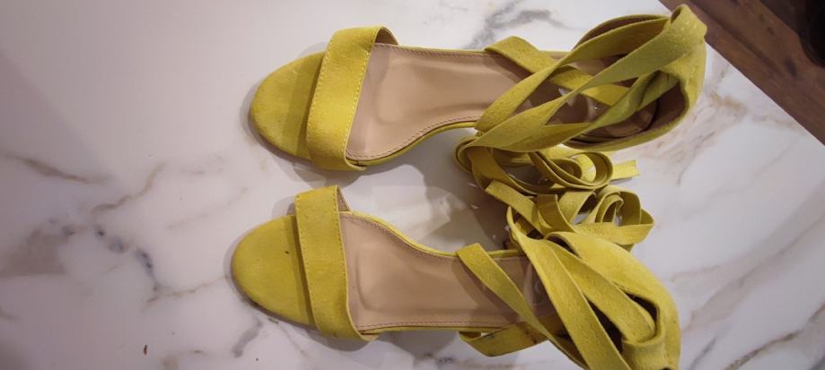 Prodajem žute sandale veličina 40, u dobrom stanju. Trake se vežu oko lista ili gležnja.