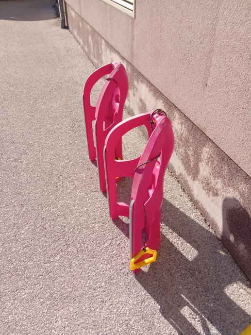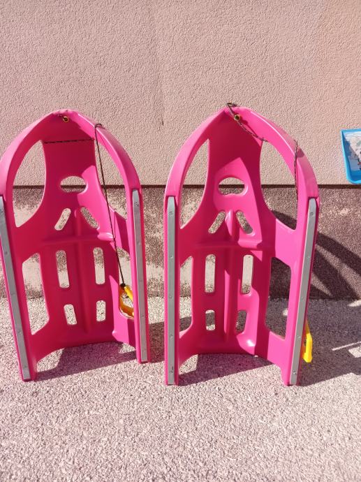 Jedne čvrste plastične sanjke (jedne već prodane). Lijepa dječja lopata za snijeg od deblje plastike.