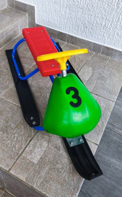 Sanjke dječje da slika, metak plastika malo korištene stanje odlično vidljivo na slikama. Sanjke su 105cm dužine, sjedala 50cm, volan ima funkciju upravljanja.