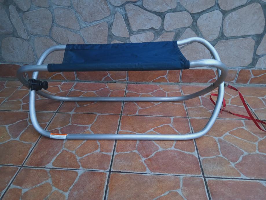 Sanjke se rasklapaju jednostavnim dodirom na gumb,zauzimaju vrlo malo mjesta u sklopljenom stanju,visoke čvrstoće, napravljene od posebne legure aluminija i čelika (Dur-Aluminij) pa izdržavaju teret do 70.kg,težina sanjki je samo jedan kilogram,otporne na hrđanje,lagane za vući uzbrdo,idealne za spremanje jer u sklopljenom stanju širina je samo 7.cm a u rasklopljenom je 30.cm !! Dužina sanjki u rasklopljenom stanju je 90.cmx30x40.cm. Ne šaljem poštom, preuzimanje je osobno nakon pregleda, mogućnost dostave na autocestu -naplatne kućice u Karlovcu.