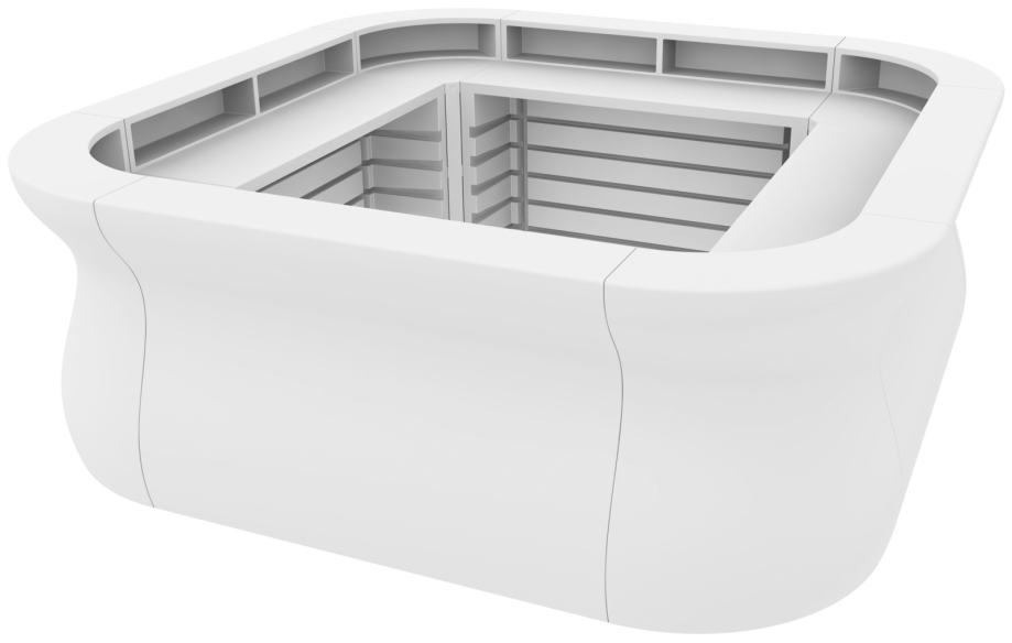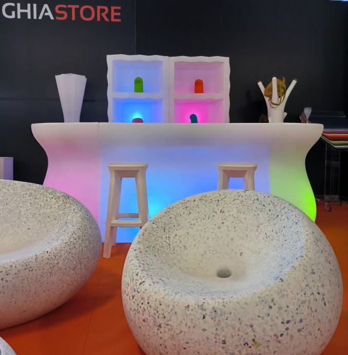 Svjetleći šank koji se može koristiti sam ili spojen sa više elemenata za izradu šankova i recepcijskih stolova. Lako se pomiče i otporan je na udarce. U donji odjeljak mogu se smjestiti jedinice za hlađenje, ugradbeni uređaji ili 5 polica. Pogodan za vanjsku i unutarnju uporabu. Svaki modul ima zasebno rasvjetno tijelo.