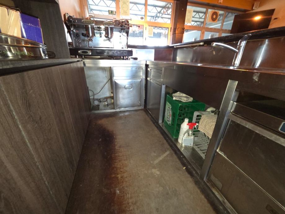Klupčica na šanku je mramor, u visini 120 cm. Prednja maska je pvc, srebrne boje, koji se može mijenjati. Uz šank ide i inox odmorište za noge. Rasvjeta je led. Ima duplu sudoperu, jednu ladicu za soc od kave, koš za smeće i zatvoreni dio, te otvore za perilicu, ledomat i skladištenje.