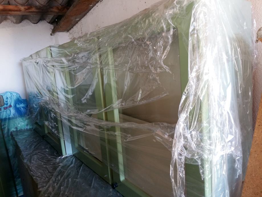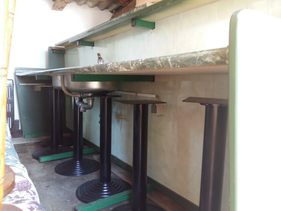 ŠANK od medijapan ploča s metalnom konstrukciom - dužine 3 m + četvero krilni ormari s gornjim elementima od medijapana,Pomoćni šank, vješalica i polica- sve u kompletu s šankom
