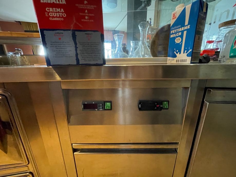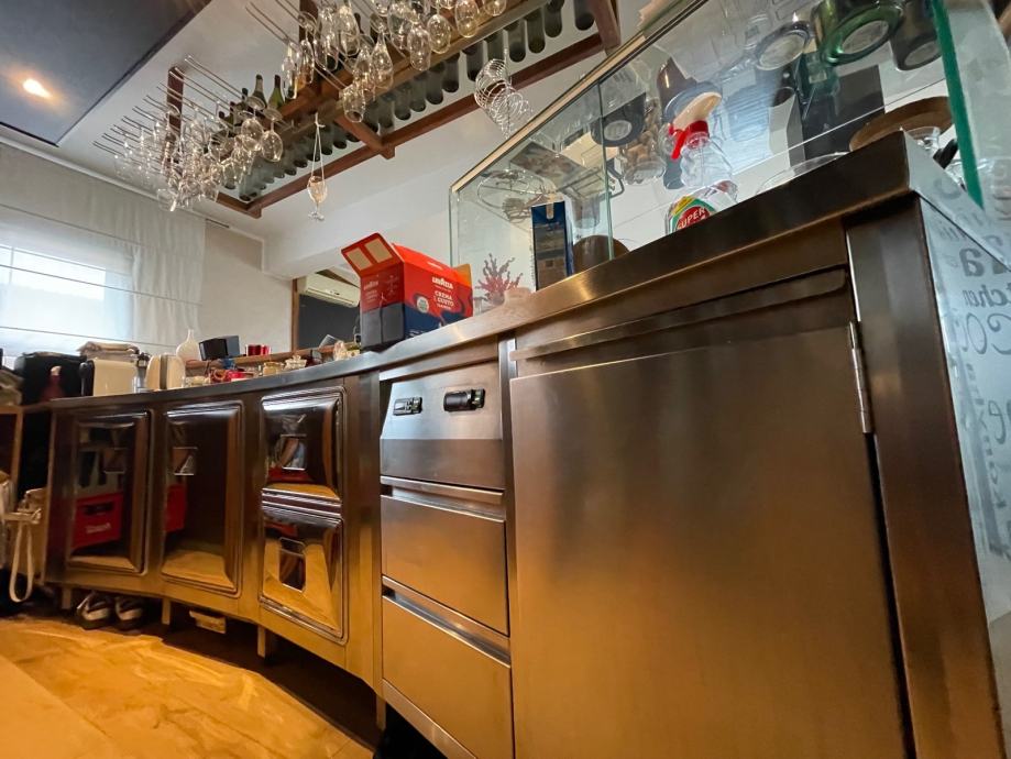 Zaobljeni šank cca 4.5m dužine + 3m rashladni dio s 4 ladice i 1 vratima