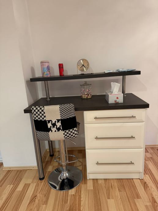 Prodajem moderan kućni šank u jako dobrom stanju. Praktičan i stabilan, ima radnu plohu, gornju policu i 3 ladice za pohranu. Nema nikakva oštećenja, kao nov. Stolicu poklanjam uz njega. Dimenzije se vide na zadnjoj slici. Moguće samo osobno preuzimanje, nalazi se u Zagrebu.
