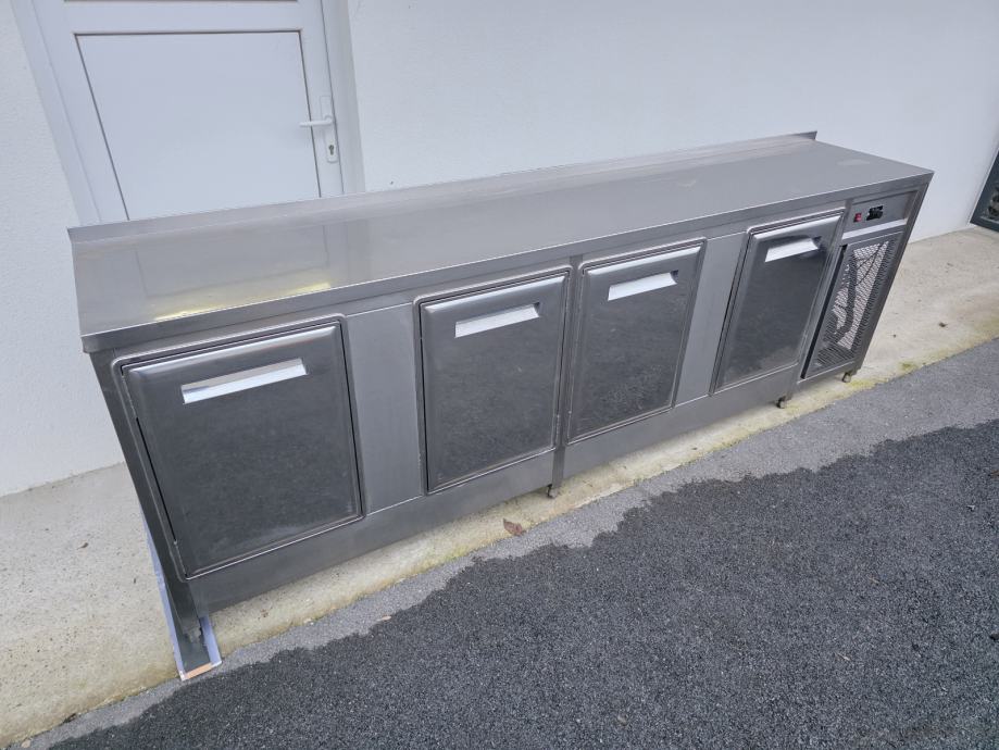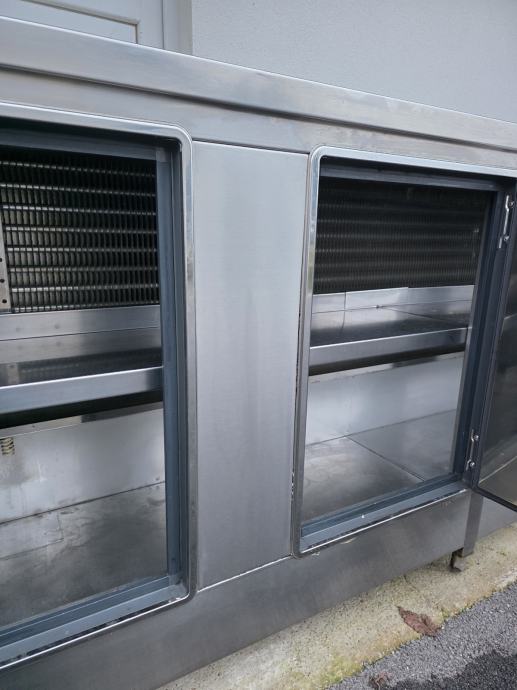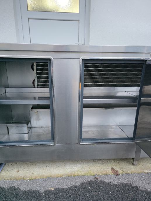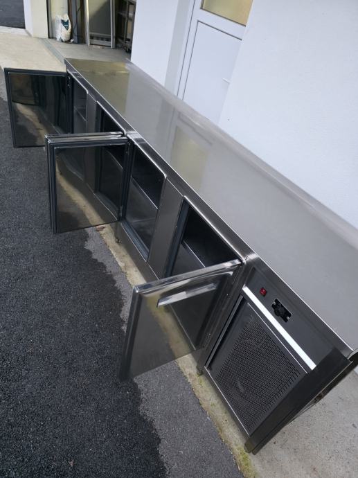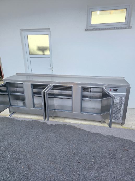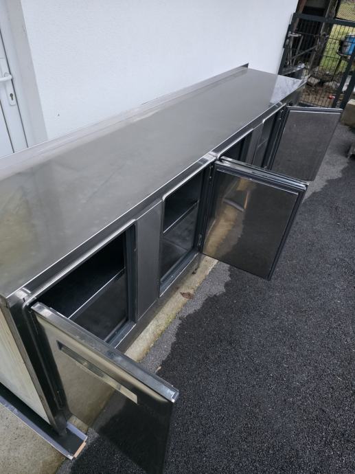 Oprema za ugostiteljstvo profesionalna ugostiteljski inventar sudoper profi ladica za toz inox perilica retropult retro pult L kamen mramor granit obloga sanka maska hlađeni icematic dio pipa sifon profesionalni šank inox nogar element napa labirint filter usis isis klizna vrata termostat polica zastita zida ledomat vitrina hladena hladnjak frizider radni stol trokadero pipa spina slavina