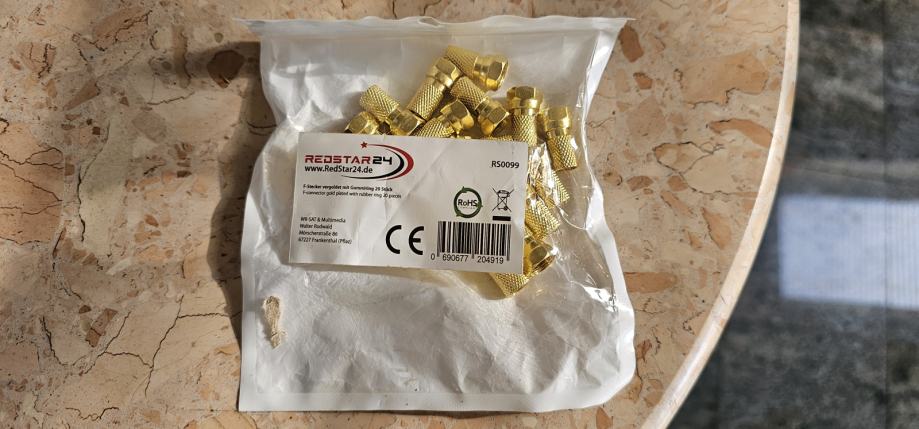 20x pozlaćeni, navojni F-konektor 7 mm "Redstar24", made in Germany