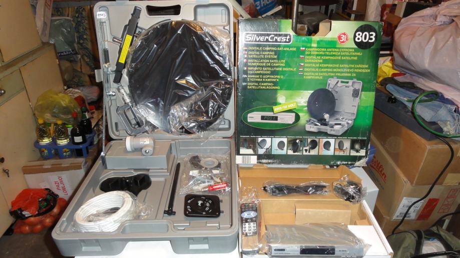 DIGITALNI SATELITSKI PRIJEMNIK SA ANTENOM PRIJENOSNI KOMPLET SA KOFEROM ZA KAMPIRANJE ILI UPOTREBU U STANU ILI KUĆI SL 65/12 komplet se sastoji od:
