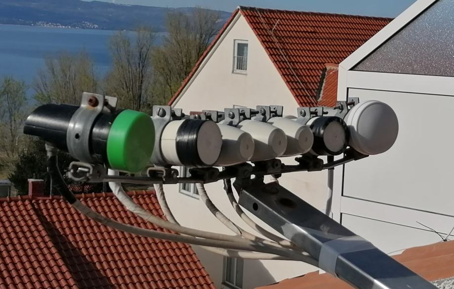 Na antenu su montirana 2 spojena gibertinijeva nosača sa sa 6 alps LNB-a i jedan krajni širi.