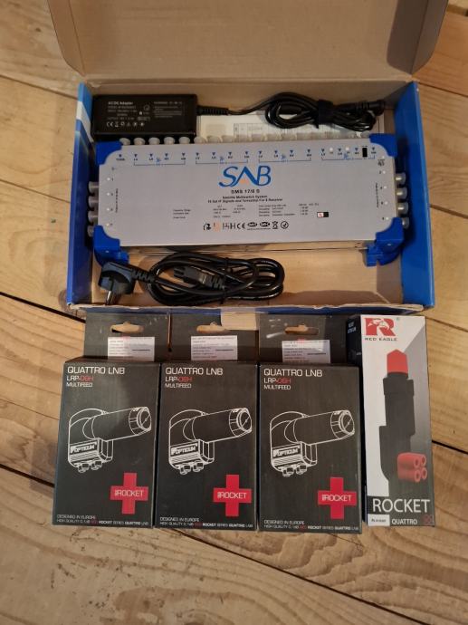 Prodajem Multiswitch 17/8 četiri Quattro LNB-a i tanjur 100cm sve je novo nikad korišteno !!!