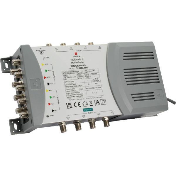 Samostalna multisklopka za 2 satelitske pozicije s 9 ulaza i 8 izlaza, pogodna za distribuciju satelitskih i zemaljskih signala u malim i srednjim sustavima.