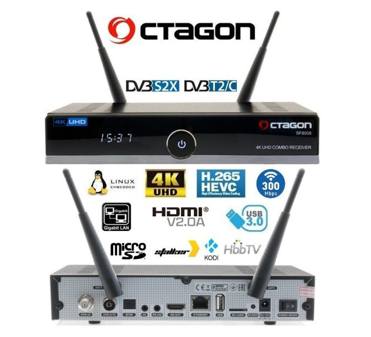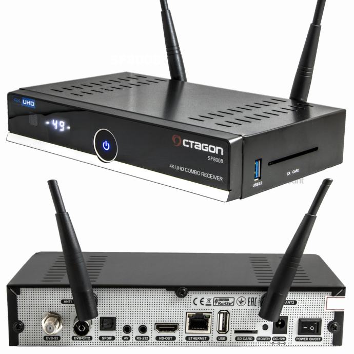 The Octagon SF8008 also features HDMI 2.0, AV (Audio & Video) and S / PDIF output for digital audio, and consumes less than 0.5Watt in standby.