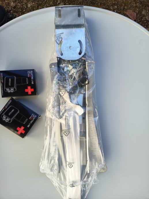 Komplet aluminijska satelitska antena 90cm, nosač za dva LNB-a i dva nova LNB-a quattro. Oprema je nova i prodajem je kao komplet. Ne šaljem poštom, isključivo osobno preuzimanje. Za sve informacije slobodno nazovite.