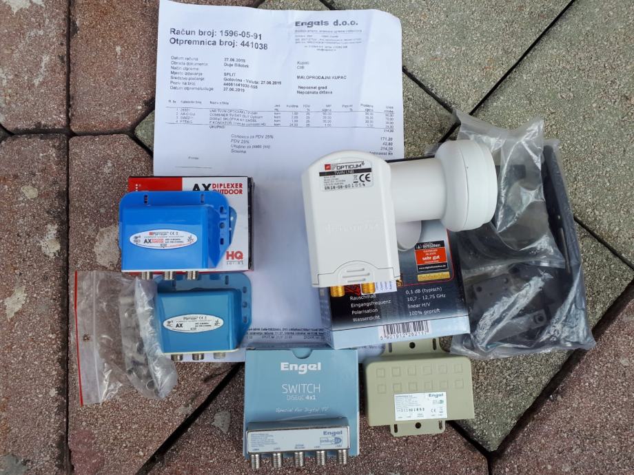 Prodajemo satelitsku antenu. Tanjur je stariji, ali smo kupili sve nove dijelove za njega prošle godine. Račun i dijelovi vidljivi na fotografijama.
