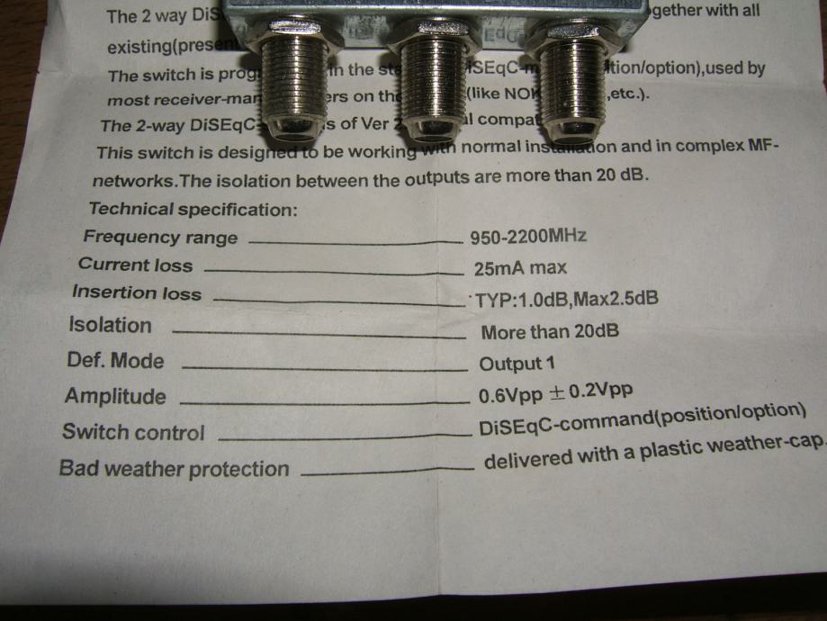diseqc 2.0-SWITCH.Za prijem 2 satelita na 1 resiver.Prodajem po meni jedan od najboljih svičeva,odlično radi sa svim prijemnicima i LNBima.proizvod švedske firme emitor ab,koja ujedino proizvodi i mjerne instrumente za rad sa sat. opremom.Dolazi sa zaštitnom kutijom za montažu i specifikacijama.diseqc switch.