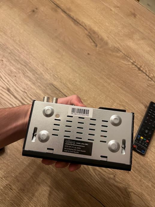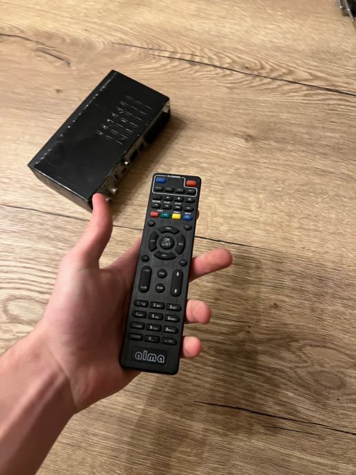 Prodajem TV emitator (set-top box) marke Alma, model Alma zřejmě 2801, crne boje, u kompletu s originalnim daljinskim upravljačem. Na stražnjoj strani uređaja nalaze se priključci uključujući SCART, HDMI, USB, antenski ulaz i izlaz te S/PDIF digitalni audio izlaz. Dolazi zajedno s daljinskim upravljačem.