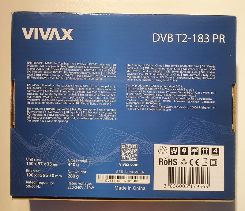 VIVAX (DVB-T2 183 PR) - TV PRIJAMNIK