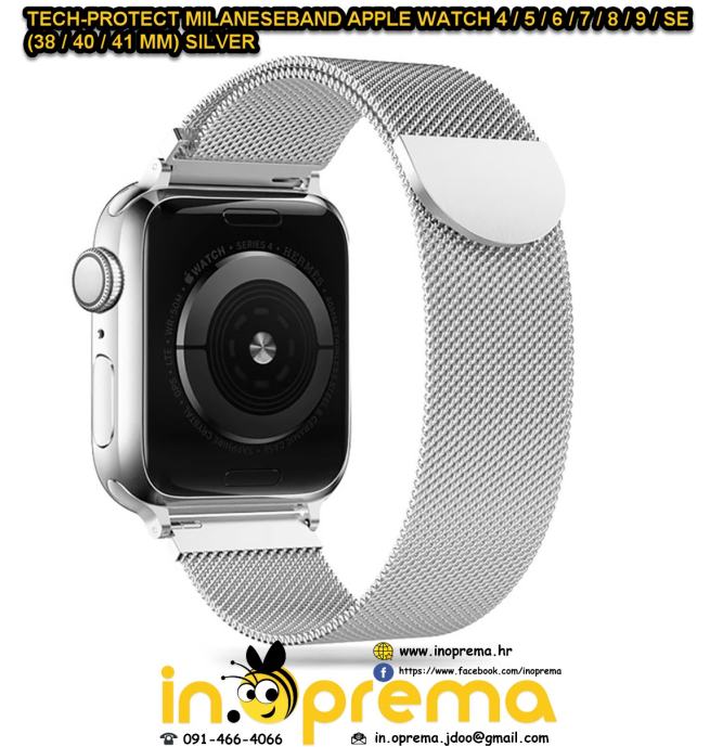 APPLE WATCH REMEN NARUKVICA SPORTSKA PAMETNI SAT TECH-PROTECT MILANESEBAND APPLE WATCH 4 / 5 / 6 / 7 / 8 / 9 / SE (38 / 40 / 41 MM) SILVER NARUKVICA REMEN POSTARINA 091/466-4066