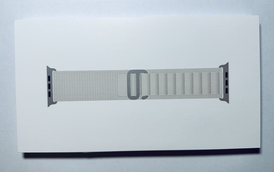 Prodajem Starlight Alpine Loop remen dobiven sa satom Apple Watch Ultra, u originalnom pakiranju. Remen je kompatibilan sa Apple Watch Ultra 49mm, te sa Apple Watch 44mm i 45mm (https://support.apple.com/en-ke/HT204818).