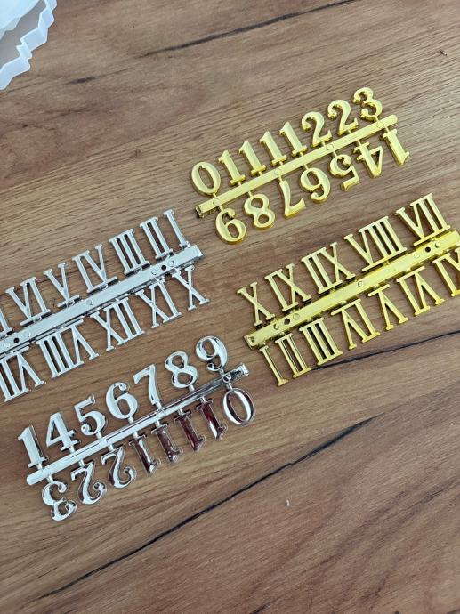 Brojevi za izradu sata od epoksidne smole. Zlatni i srebrni, plastični. Novi kompleti.