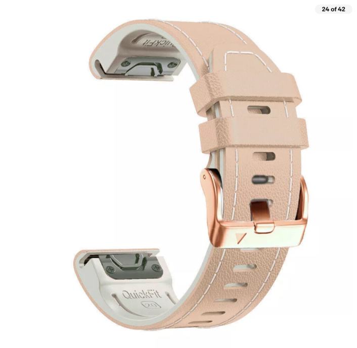 Garmin Fenix remen quick fit, 20mm, za modele fenix 5s/6s/7s. Kožni remen, boje marelice, sa zlatnom kopcom. Zamjenski, ali vrhunska kvaliteta. Original kosta 119 eura.
