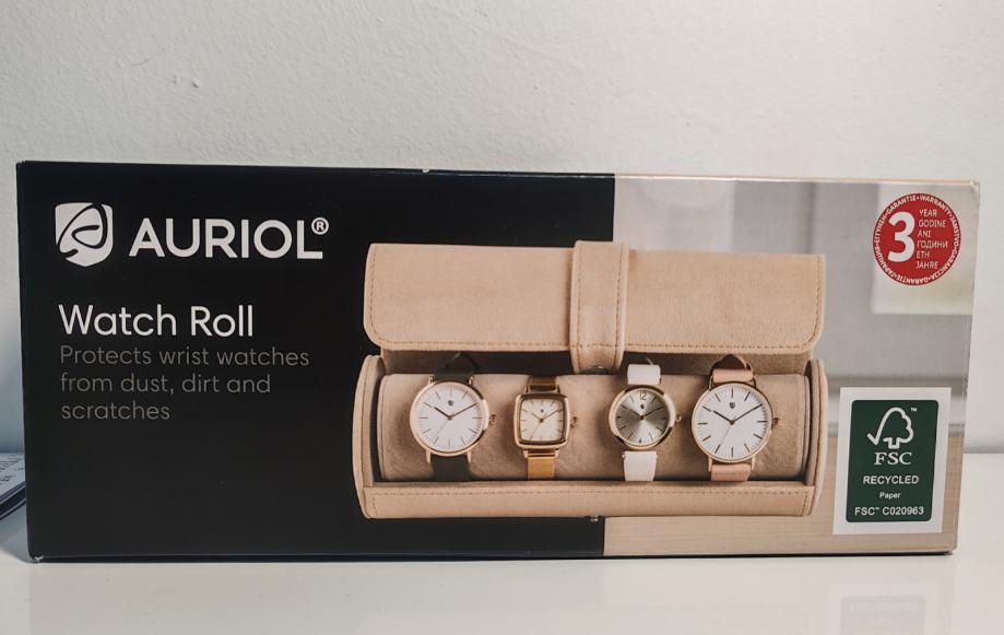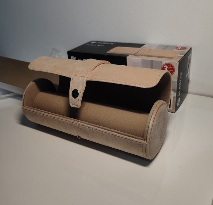 Prodajem novo kućište za satove marke Auriol u bež boji. Radi se o praktičnom Watch Roll modelu koji može primiti do 4 sata. Izvedeno je od kvalitetne eko kože s mekim unutarnjim ulošcima koji štite satove od ogrebotina. Kućište se zatvara remenom s kopčom, što omogućuje sigurno skladištenje i praktičan transport satova. Dolazi u originalnom pakiranju. Kućište je otvoreno za potrebe slikanja!
