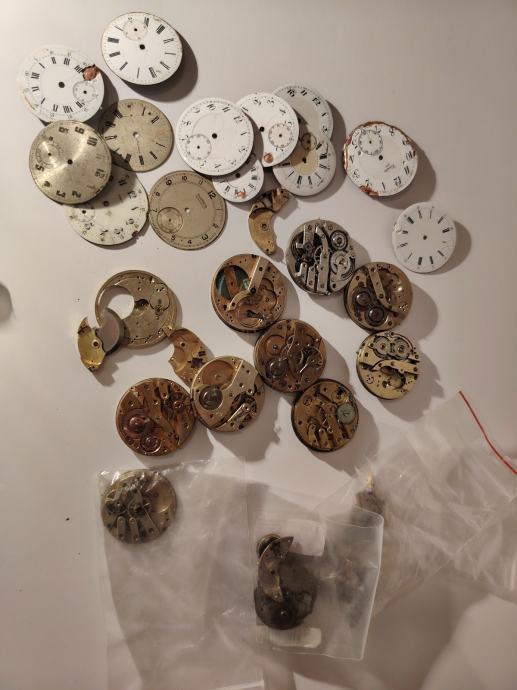 Ispravnost nepoznata. Prodajem lot dijelova za satove koji uključuje brojne komponente za restauraciju i popravak starih satova. U lotu se nalaze mehanizmi različitih veličina i tipova, brojni brojčanici u raznim bojama i dimenzijama, te razni drugi dijelovi. Dijelovi dolaze iz raznih satova, a neke komponente su djelomične ili nekompletne. Sve je pohranjeno u prozirnim vrećicama radi preglednosti. Zanimljivo za kolekcionare, restauratore ili entuzijaste koji rade na popravku starih mehaničkih satova.