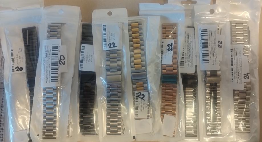 Prodaju se metalni remenI širine 20, 22, 23 i 24 mm, dužine 175 mm, sa pinom za brzu zamjenu remena i alatom za skraćivnje remena (zadnja slika).
