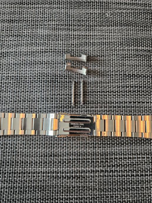 Prodajem metalnu narukvicu/remen za TISSOT SEASTAR 1000, Chronograph, Quartz. Narukvica je koristena, sa malim standardnim ogrebotinama od nosenja. Skinuta je sa sata jer je zamijenjena sa silikonskim remenom koji mi bolje pase.