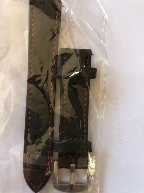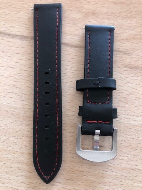 Potpuno nova nikad korištena narukvica za sat od crne mat kože sa crvenim šavom širine 20 mm.