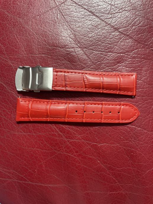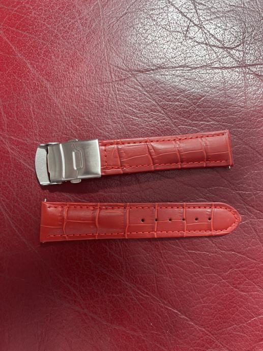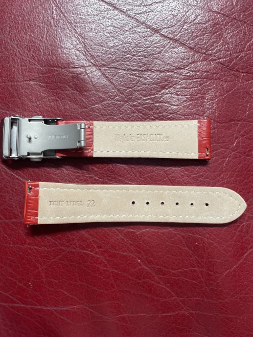Remen za muški sat od kože, crveni, 22mm, prodajem za 30e, potpuno nov i ne korišten proizveden u Njemačkoj. Antialergiski. Mogućnost samomontaže bez odlaska uraru, ručni rad. Besplatno slanje.