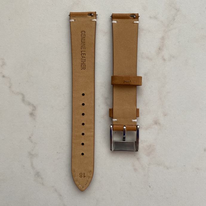 Prodajem smeđi remen za sat širine 18 mm izrađen od prave brušene kože.