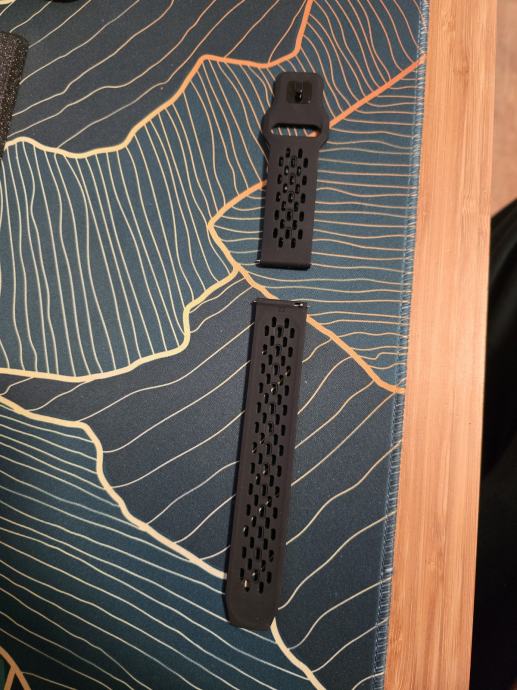 Prodajem nov silikonski remen za sat širine 22mm u crnoj boji. Remen ima perforiranu strukturu koja omogućuje dobru prozračnost, a dolazi u dva dijela s kopčom za pričvršćivanje. Materijal je mekan i fleksibilan, prikladan za svakodnevno nošenje.