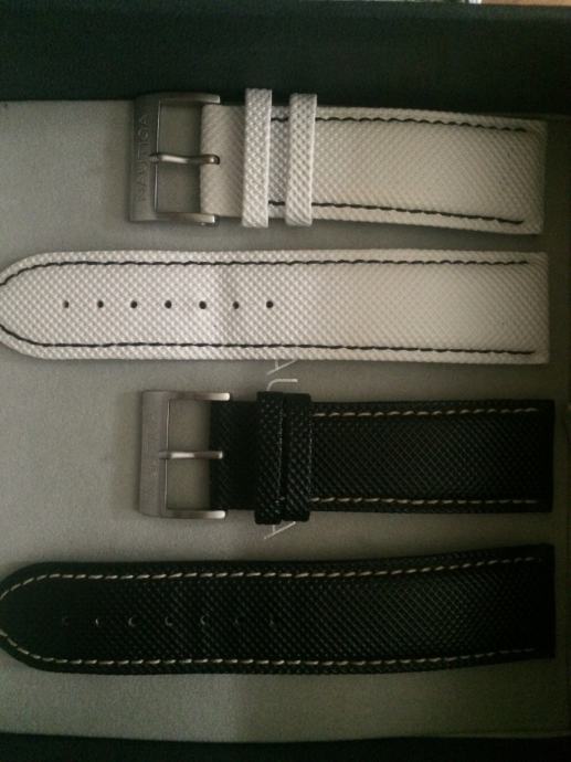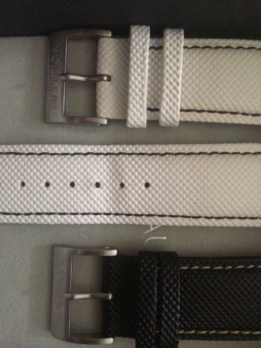 Prodaju su bijeli i crni remen za Nautica sat(originalni),izvorno za Nautica model A19559G(sa slike),sirine 24mm,ali pasu i na ostale Nautica modele sa tom sirinom remena.nikad koristeni samo isprobani,kupljeni u setu zajedno sa satom.Najradje bih zamjenu za Nautica gumeni remen u svijetlo ili tamno plavoj boji (sa slika 7 i 8),ili za tamno plavi ili crni Nautica remen ,sirine 22mm (sa slika 9 i 10 ),ostale zamjene me ne zanimaju ,100kn komad.prvi kontak sms ili mail.