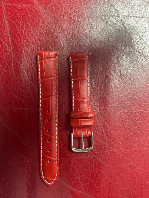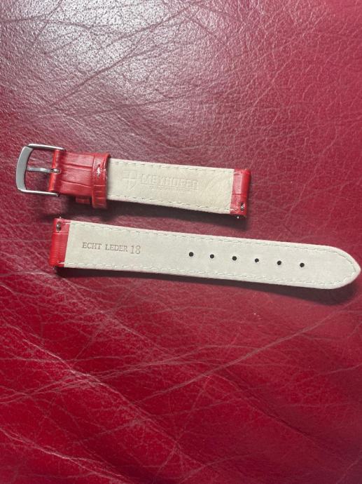 Remen za ženski sat od kože, boja svijetlo crvena i veličina 18mm, nov i nekorišten proizveden u Njemačkoj prodajem za 30e, antialergijski.