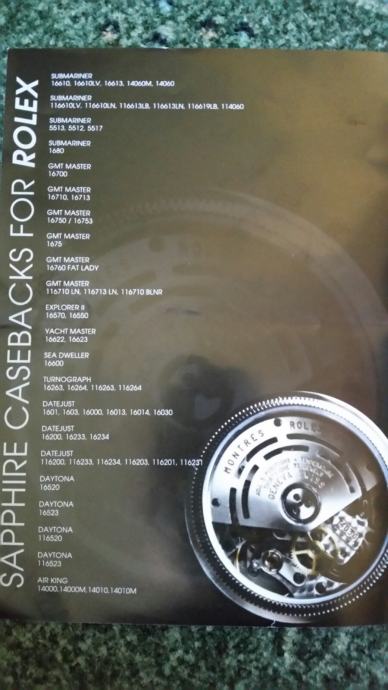 Original završni poklopac kučišta sata (Oyster)od SAFIRNOG STAKLA za Rolex Daytonu,ovaj SVETI GRAL među satovima, model 116500 LN, te za model 116520 kao i za 16520, vrhunske izrade, Njemačke kvalitete sa atestom, kada poželite možete s ponosom pogledati i pokazati svojim prijateljima, vrhunski, originalni mehanizam u svojem Rolexu Daytoni...Svoju najbolju ponudu pošaljite putem maila ili sms porukom...početna cijena: od 150 eura...na više...bit će prodano najboljem ponudaču...Sretno...!!!