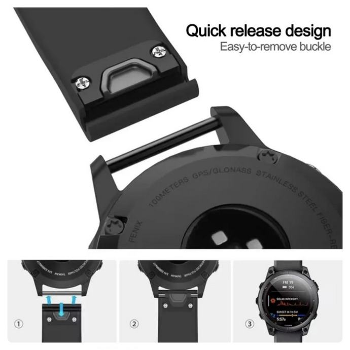 Prodaju se silikonski remeni dužine 192 mm (83+109mm), širine 20 mm, sa mehanizmom za brzu zamjenu remena i crnom kopčom.