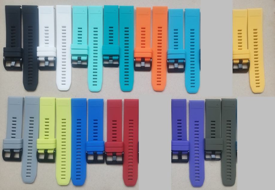 Prodaju se silikonski remeni dužine 218 mm, mjereno sa kopčom (90+128mm), širine 22 mm, sa mehanizmom za brzu zamjenu remena i crnom kopčom.